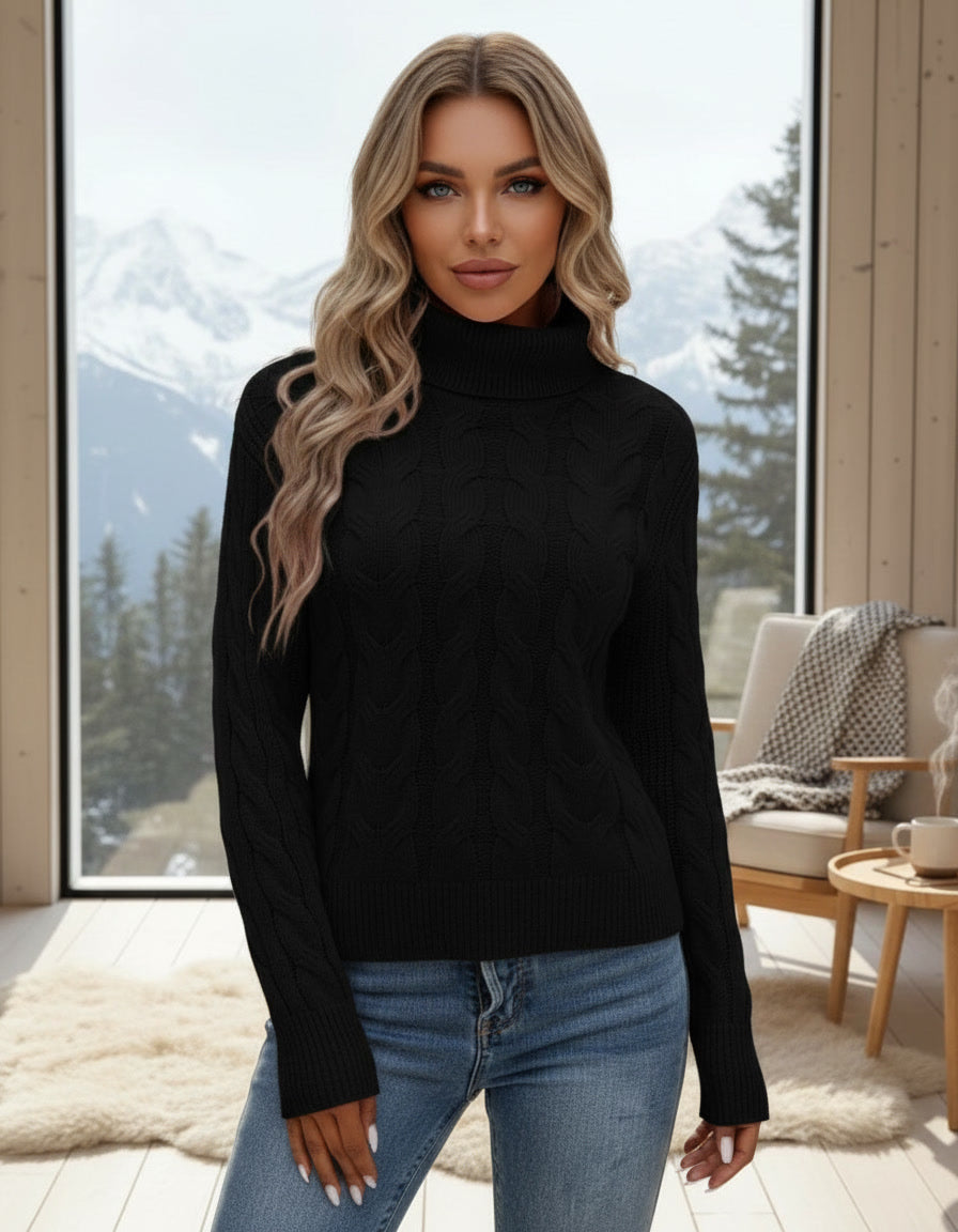 Kabelstrikket høyhalset genser med tidløs eleganse